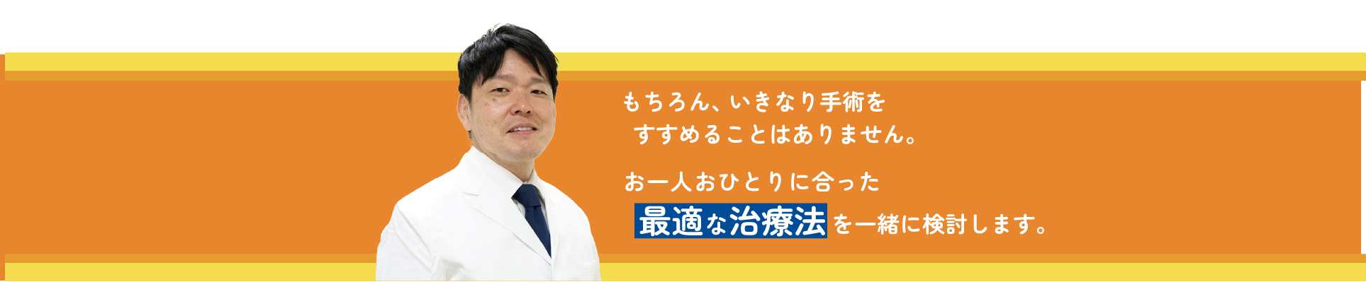 当院では、手術が必要なケース・不要なケースの見極めを丁寧に行い、保存療法を含めた複数の選択肢をご提案いたします。