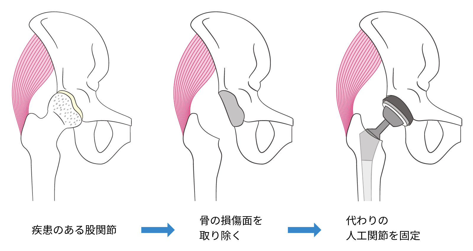 人工股関節置換術は、変形や痛みが強い場合に行われることが多い手術です。